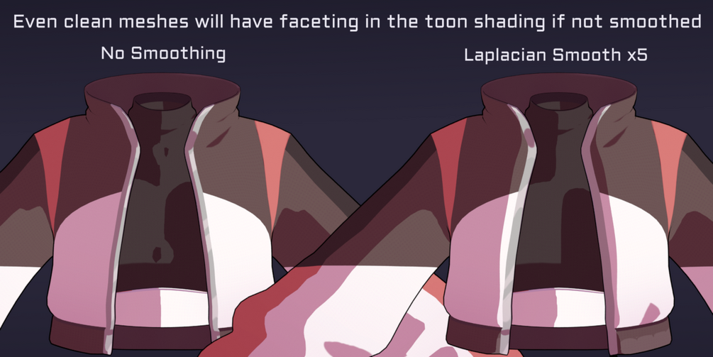 We launched with the Laplacian Smooth + Weighted Normals modifier that instantly improves Toon Shading in most circumstances.