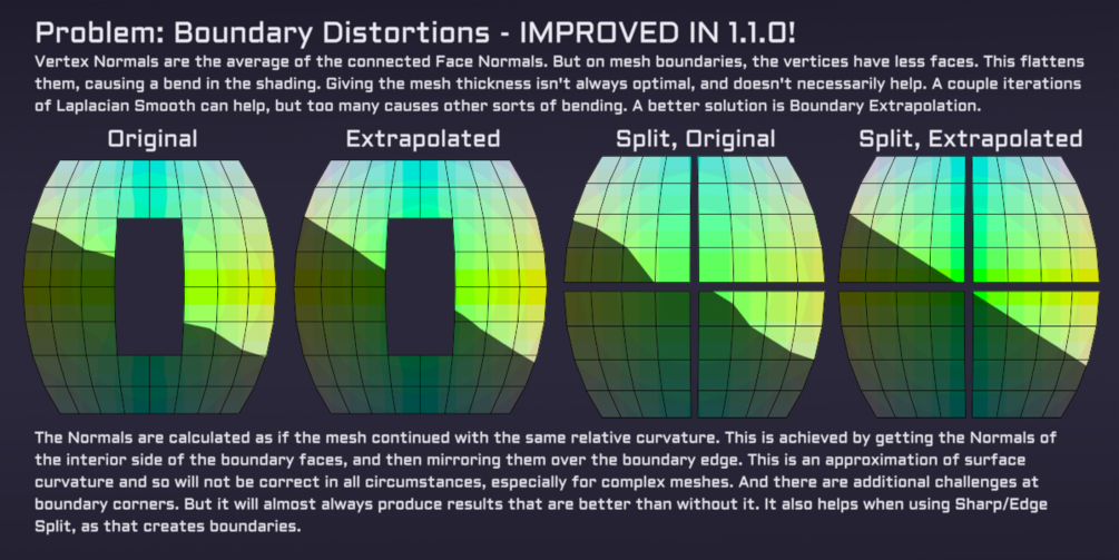 • Laplacian Smooth Normals Modifier (All Versions): Get clean Normals even with imperfect topology. No more fighting with retopology, or needing proxy meshes just to avoid problems from a few triangles. With Weighted Normals and Laplacian Normal Smoothing, you can get the same results on uneven triangulated meshes as on clean quad topology. Often this let's you author directly on game production meshes!
